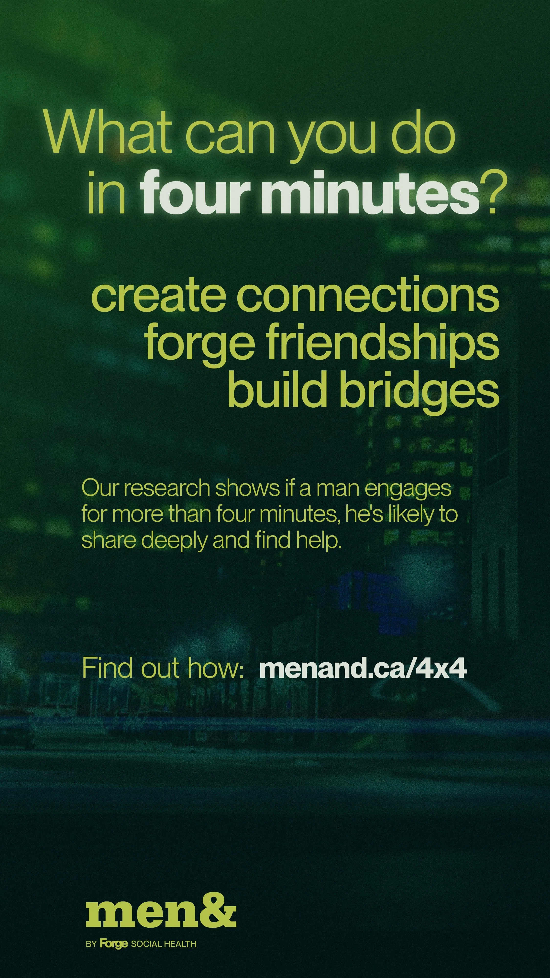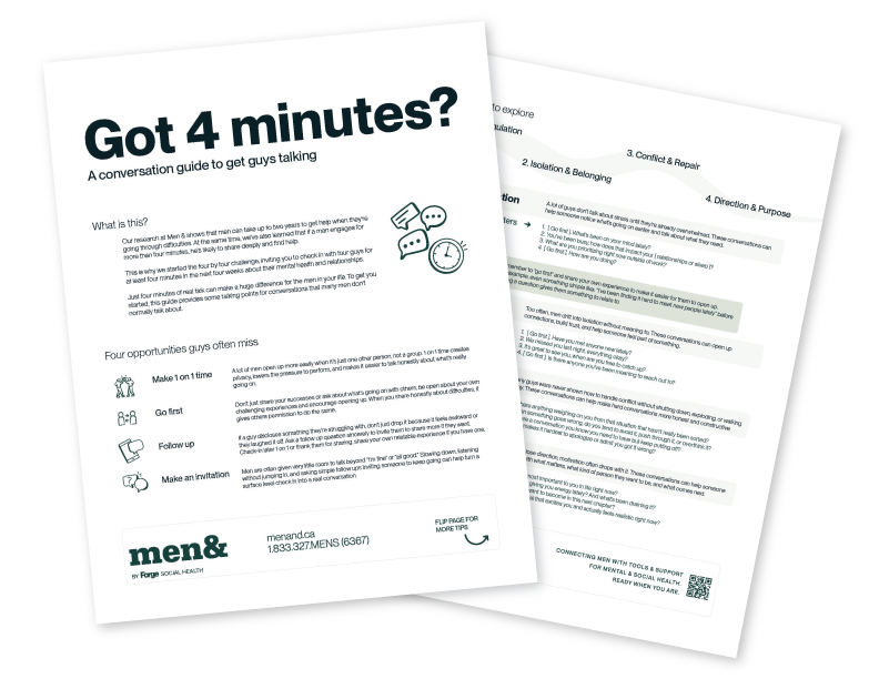 Men & is a partnership of Forge Centre for Dignity-Driven Leadership, and Fear Is Not Love, working across Canada to change how men are engaged for mental and social health.